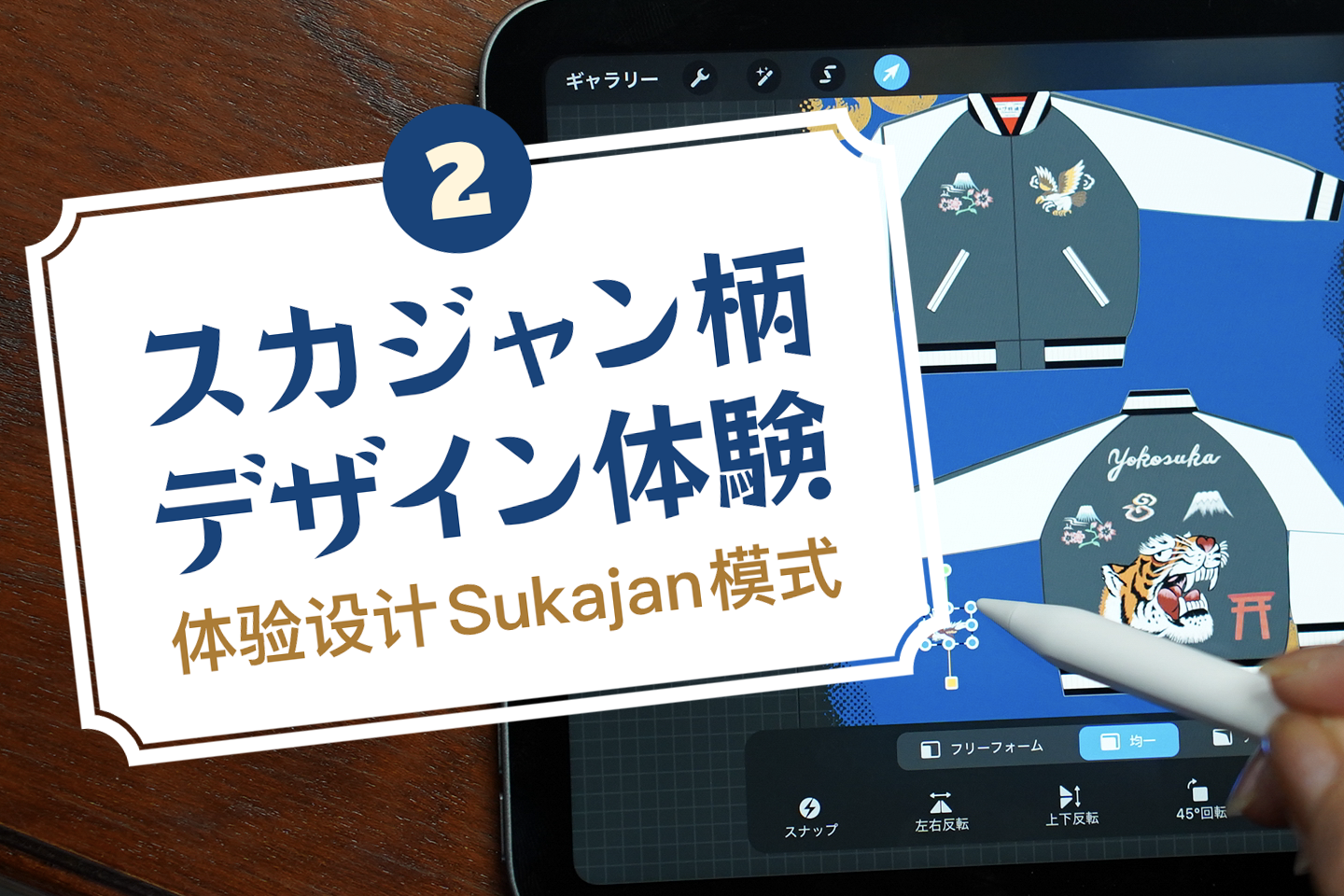 日本で唯一のスカジャン絵師 横地広海知氏による講座と実演を含むプログラム。スカジャン柄の歴史を学んでいただきながら、伝統柄と呼ばれる代表的なスカジャン柄を組み合わせてご自身の柄をデザインしていただきます。